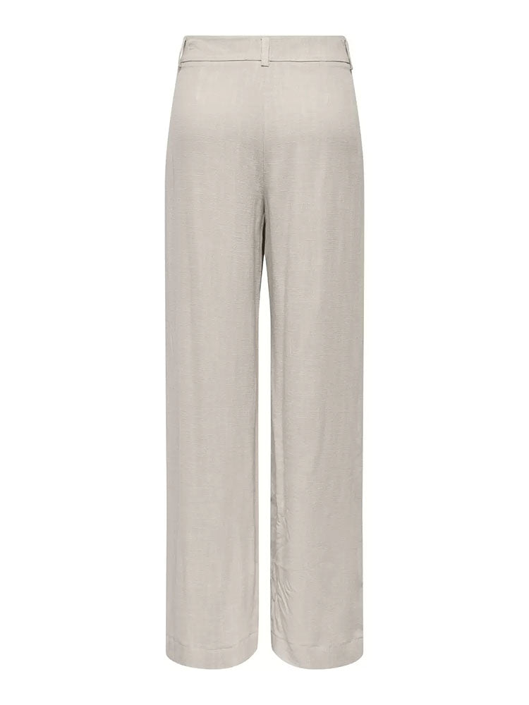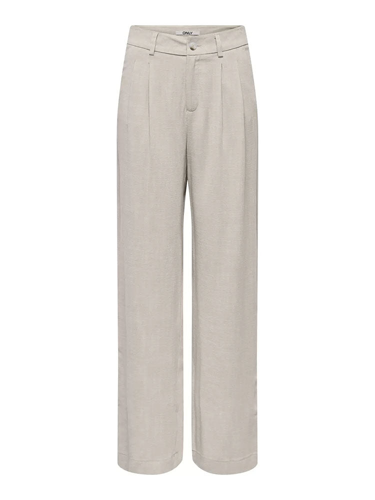 Onlsiesta Mid Waist Linen Pleated Wide Leg Trousers-Beige