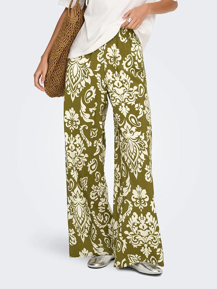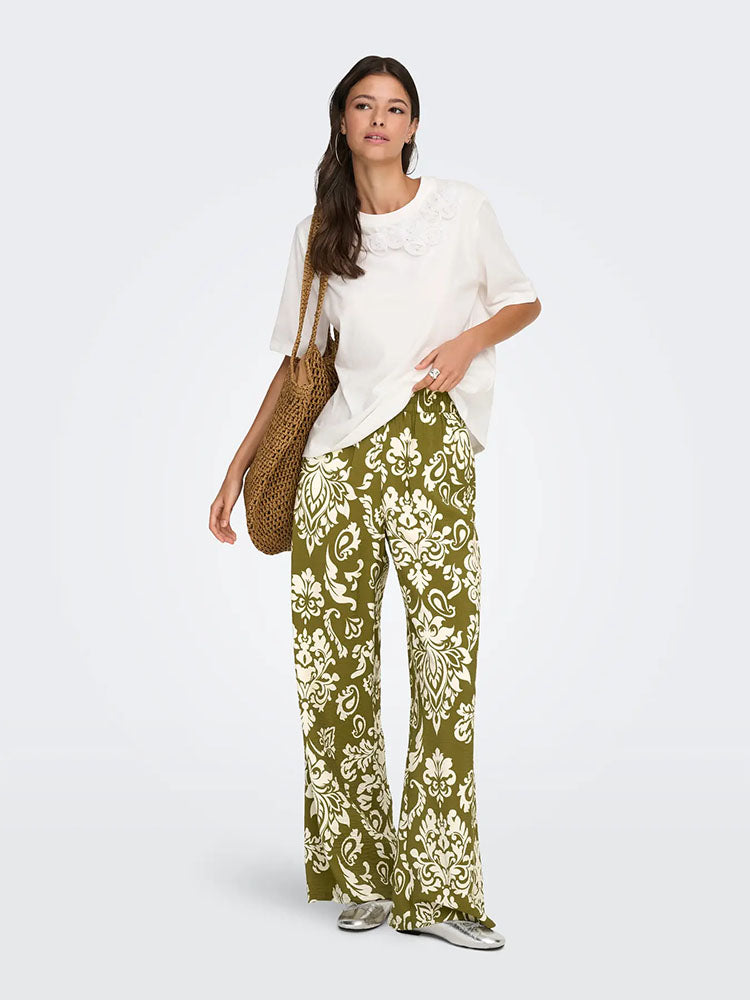 Jdytami Mid Waist Wide Trousers-Green/Cream