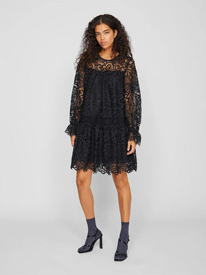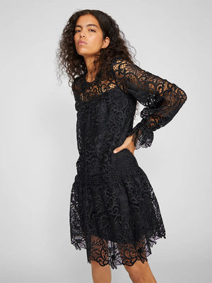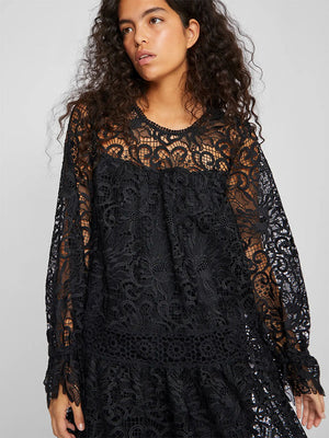 An elevated and sophisticated style with extra detailing and attention to create your timeless wardrobe. Cotton fabric is breathable, absorbent, and transmits moisture away from the body. Your upgraded choice - a style with extra focus on quality and detail. - Product Type : Lace dress - Neck : Round Neck - Sleeve : Long sleeves - Cuffs : Lace cuffs - Length/Size : Knee length - Extra details : Lace detail - Fit : Regular Fit