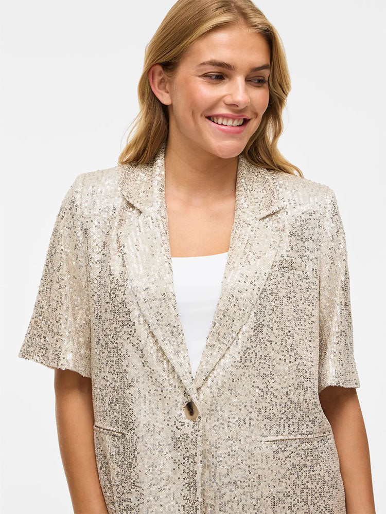 Vihirid Short Sleeve Silver Sequin Blazer