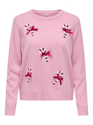 Onlxmas Shine Knit Sweater-Pink Candy Canes