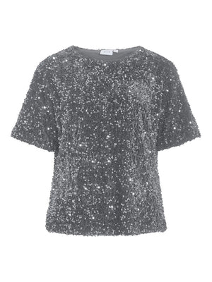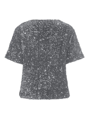 All eyes on you with this glamorous, elevated style. Sequin fabric is a type of fabric covered with plastic or metal-shaped pieces. They can be glossy or matte, reversible or one-sided. - Product Type : Blouse - Neck : Round Neck - Sleeve : Short sleeves - Fit : Regular Fit - Lifestyle : Party