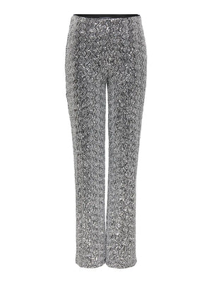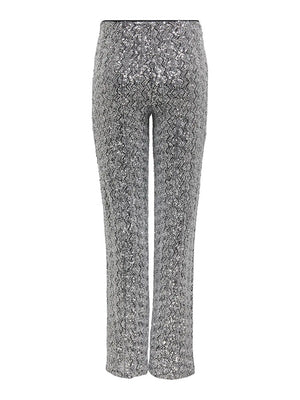 Onlfalvy High Waist Sequin Straight Leg Silver Trousers