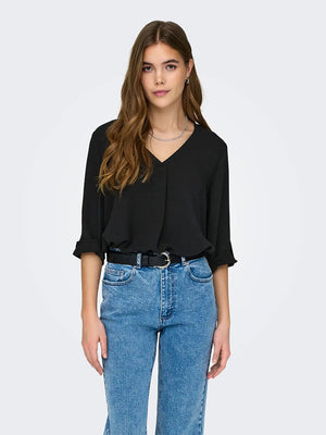 Restock your wardrobe with stylish essentials such as T-shirts and tops, easy to match with existing items. Woven fabrics are created by weaving together two or more yarns for a timeless look. JDY is a full-concept, international fashion brand offering affordable and on-trend products to the fashion-conscious consumer. - Product Type : Blouse - Neck : V-Neck - Sleeve : 3/4 sleeves - Sleeves : Volume sleeves - Cuffs : Fold-up cuffs - Fit : Loose Fit