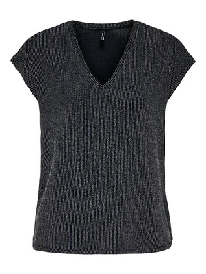 Onlcarol V-Neck Glitter Top-Black/Silver Glitter