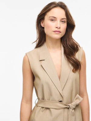 • Tailored waistcoat• Front button fastening• V-neck• Tie waist with removable belt• Side pockets• Regular fit• Length: 72 cm in size 38